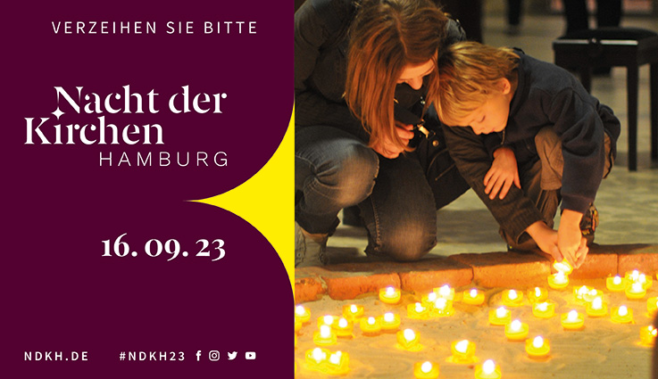 Den geistlichen Auftakt bilden Lieder aus Taizé: Singen, Schweigen und Beten im Kerzenschein. Für viele Besucher/innen, unter ihnen die evangelische Bischöfin, der katholische Erzbischof und Menschen aus der Ökumene, ist diese Andacht um 18 Uhr die spirituelle Eröffnung der bunten Nacht. Anschließend Prozession zur NDR-Bühne, dort um 19 Uhr Eröffnung der Nacht der Kirchen.