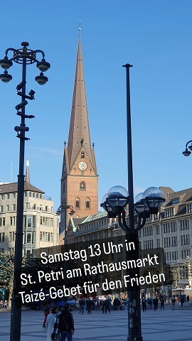 Das Taizé-Gebet in der Hauptkirche St. Petri am Hamburger Rathausmarkt findet im April abweichend am 10. Juni 2023 um 13 Uhr statt.