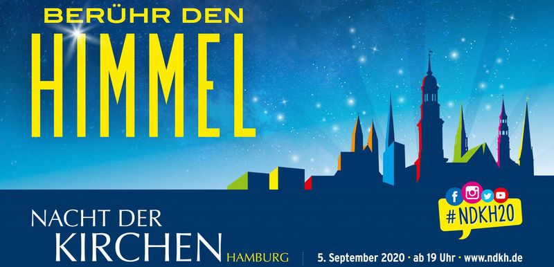 Aufgrund der aktuellen Corona-Lage hat sich die Projektleitung entschlossen, die diesjährige Nacht der Kirchen Hamburg am 5. September 2020 in ihrer traditionellen Form abzusagen. Dennoch soll der Termin nicht einfach verstreichen. Die Planungsgruppe mit Vertreter*innen aus den beiden evangelischen Kirchenkreisen, des Erzbistums und der Arbeitsgemeinschaft Christlicher Kirchen bereiten ein virtuelles Angebot vor.